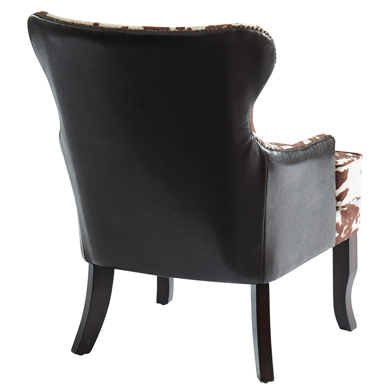 Accent Chair Made of Faux Cow Hides Fabric with Faux Leather Back (Brown)