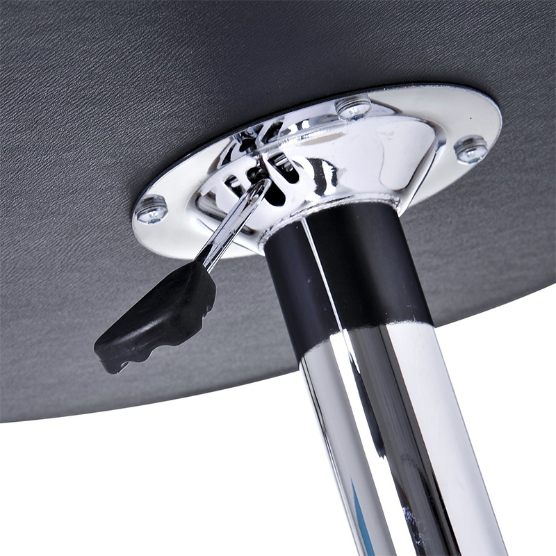 Round Wooden Table Top with PVC Vinyl Covering, Chromed Gas Lift & Chromed Base Wide Support, Adjustable Table Height To Your Desired Level With Ease. Compact Design Ideal For Any Kitchen or Bar .23.5′ L 23.5′ W ADJUSTABLE HEIGHT 27.5′-37.5′