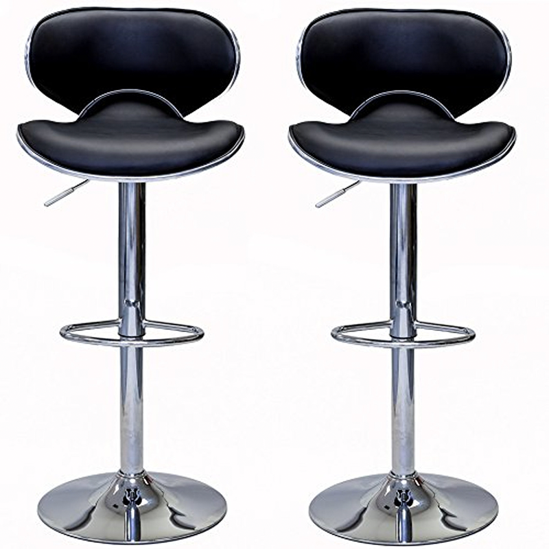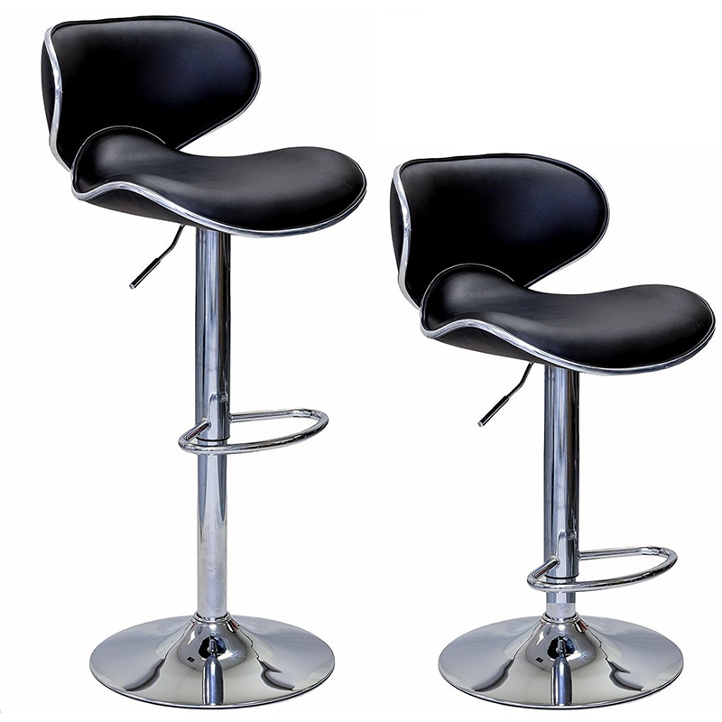 Curved Back, Height Adjustable Leatherette Saddle Style Seat Curved Vack Rest Bar Stool (Set of 2 Stools) (Black)