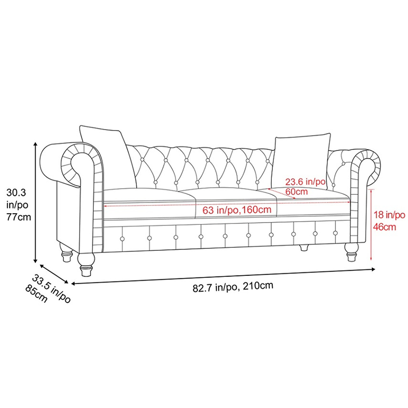 82.7″l 33.5″w 30.3″h