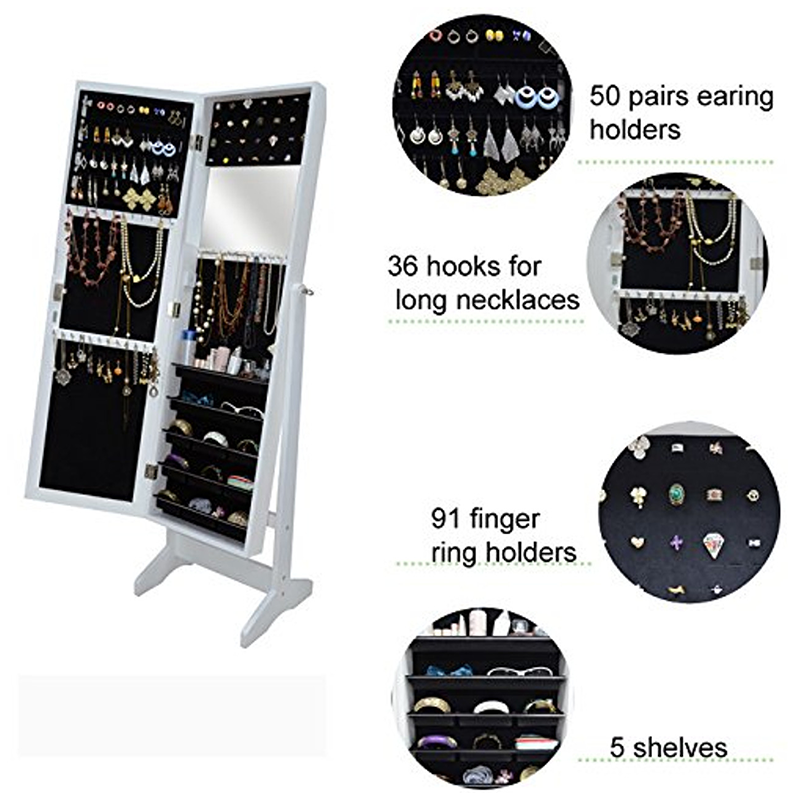Level Adjustable angel of cheval mirror outside makes dressing and cosmetic as comfortable as possible. Jewelry cabinet is with lock up device to securely store jewelries and accessories.