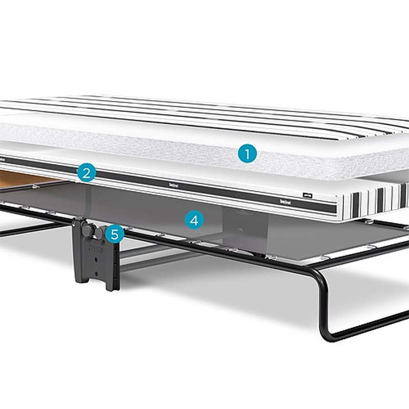 Airflow Fibre mattress Folding Bed is a hard-wearing portable bed which has a headboard and an Airflow Fibre mattress, which works in harmony with the Strong sprung base system to offer comfort and durability with space-saving convenience.